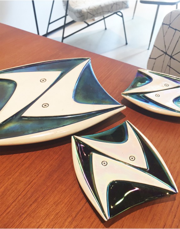 Ensemble de trois plateaux (un grand et deux petits) en céramique Verceram. Matière : céramique.