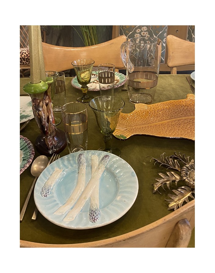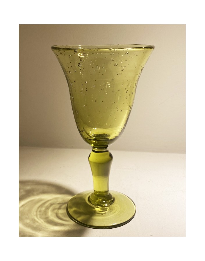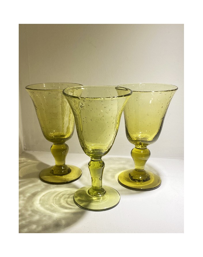 Lot de 8 verres anciens Biot, colori vert/jaune.