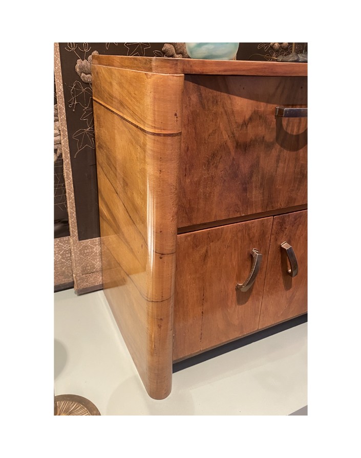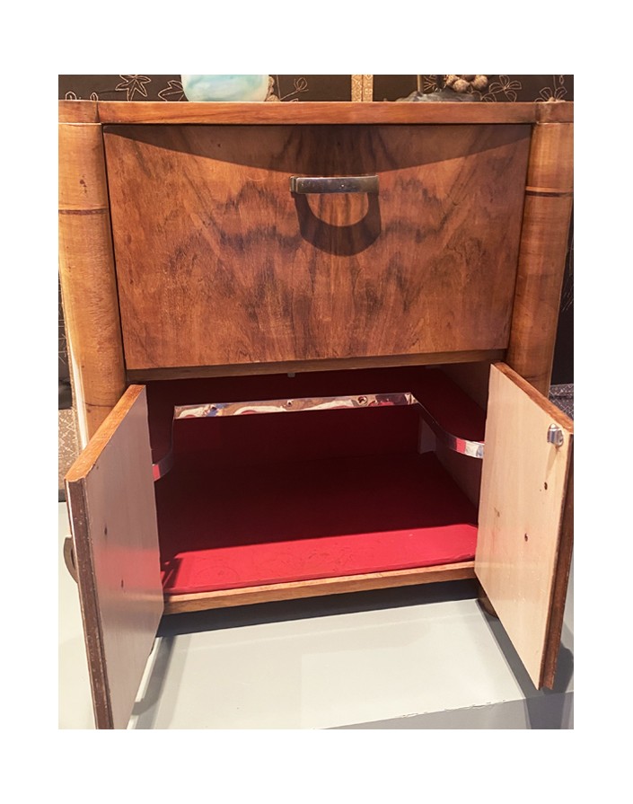Meuble bar ancien, époque art déco, en bois et marqueterie.
