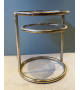 Guéridon des années 70 en métal doré et deux plateaux en verre fumé dont un pivotant